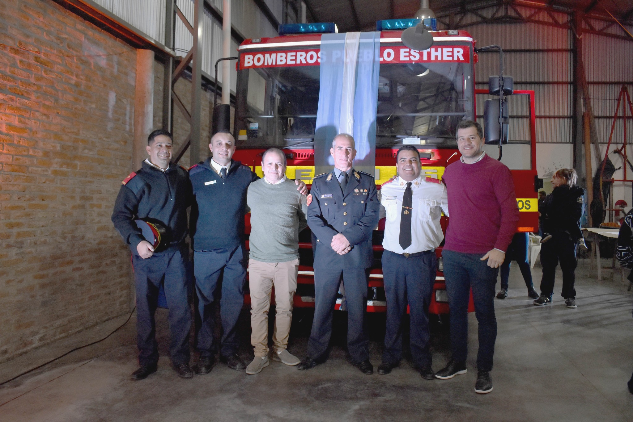 El presidente de la Asociación, Felipe Contreras, hizo entrega de la llave al Jefe del cuerpo activo, suboficial mayor, Sergio Valiente Un paso más que, con mucho esfuerzo damos, para seguir cuidando a la comunidad. Agradecemos a la municipalidad de Pueblo Esther que otorguó su aporte para que pudieramos completar la compra.