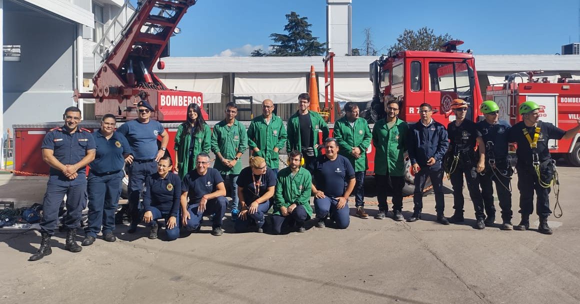 ⛓ Ayer, lunes 17, en el día de la Seguridad Laboral, fuimos invitados por la Empresa Marcopolo S.A. para una demostración de nuestra Brigada de Rescate en Altura a cargo del Oficial Gambini Sergio, acompañado por el Cabo Soria Aldo y el Bombero Riasol Exequiel. #BomberosPuebloEsther #BomberosVoluntarios